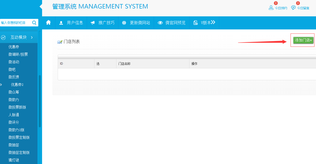 打开互动模块,弹出下拉菜单,点击优惠券2如下图所示: