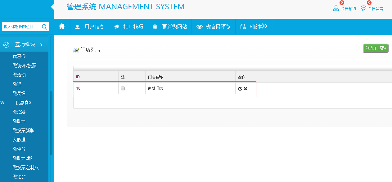 如上图,输入门店“名称”点击“提交”如下图所示: