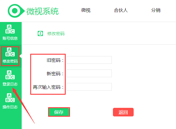 如上图,可修改代理商后台登录密码,保存后点击左侧“登录日志”如下图5所示: