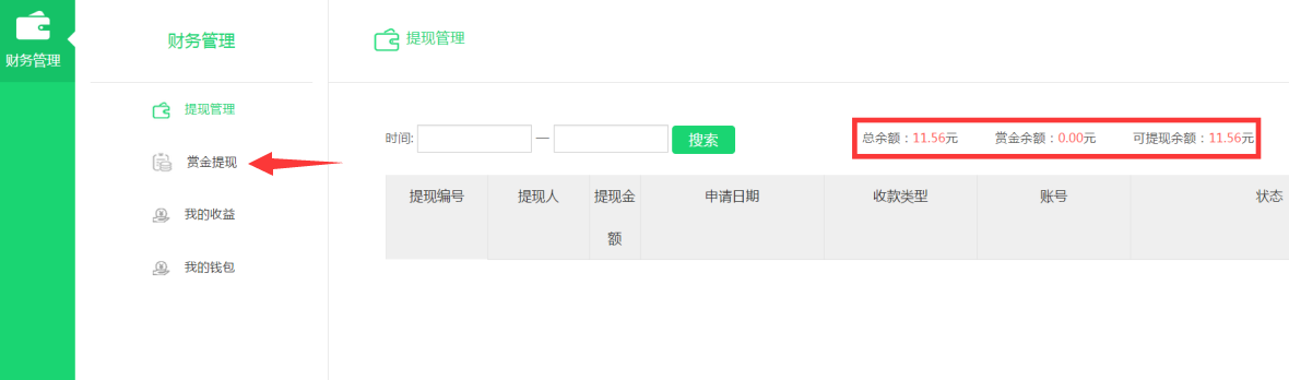 如上图在提现管理这里可以看到总余额、赏金余额和可提现金额,点击“赏金提现”如下图36: