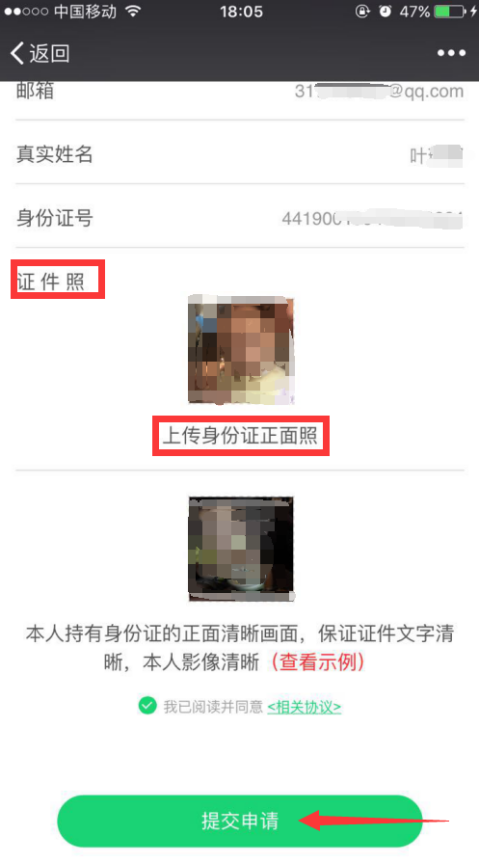 上传证件图片,点击相关协议并阅读后勾选,点击“提交申请”如下图66: